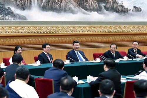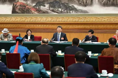 3月7日下午,中共中央总书记、国家主席、中央军委主席习近平参加十三届全国人大二次会议甘肃代表团的审议。