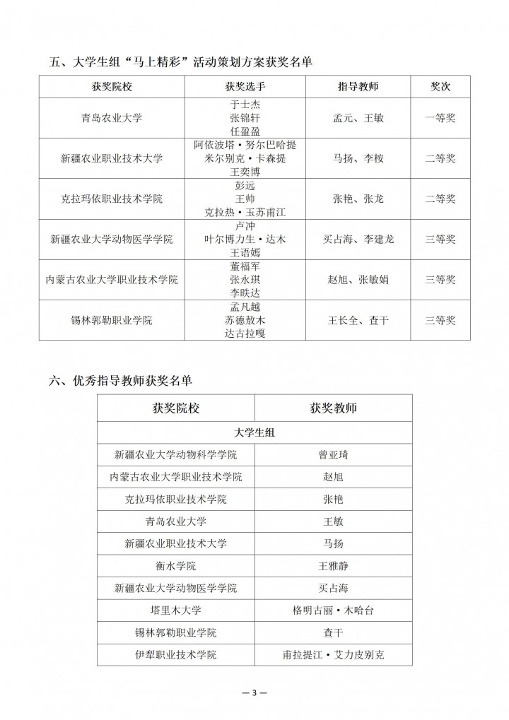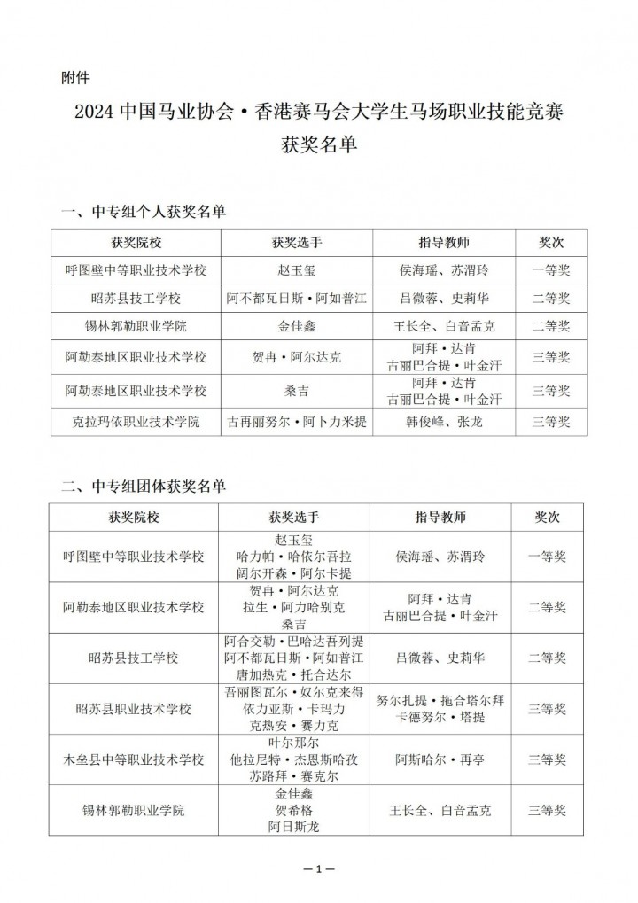 关于公布2024中国马业协会·香港赛马会大学生 马场职业技能竞赛获奖名单的通知